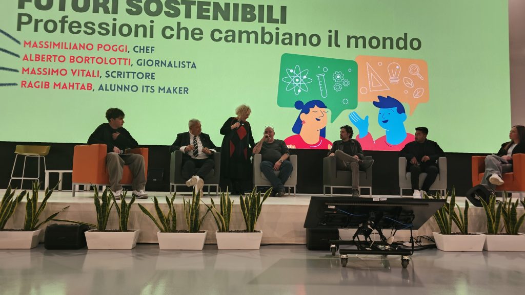 Massimiliano Poggi, cuoco, ha restituito una lettura “terrena” ma lucidissima: più che sostenibilità, serve educare al pensiero etico. Significa gestire risorse, ridurre sprechi, valorizzare ogni ingrediente e ogni gesto. Non un esercizio teorico, ma un modo di lavorare che si impara e si trasmette. Il suo messaggio ai ragazzi è stato netto: “non imitate la cultura dello scarto; ribaltatela”.
