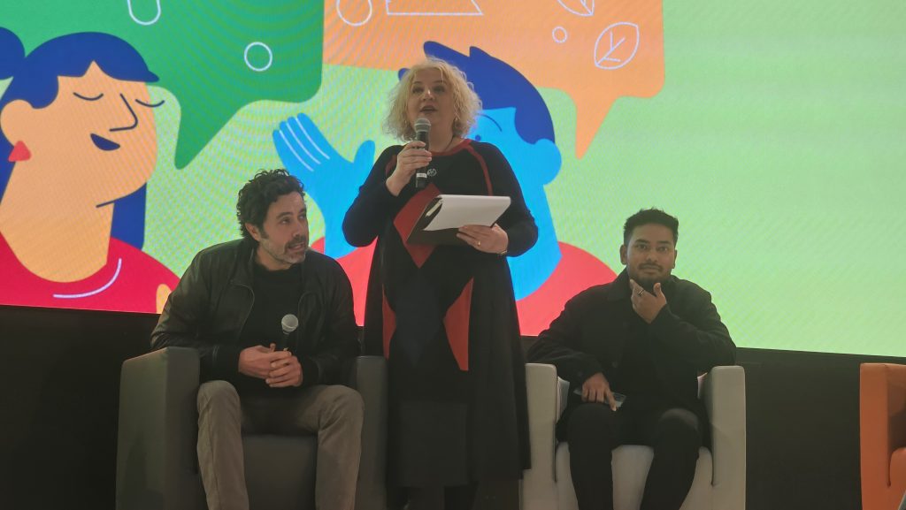 La parte centrale della mattinata è stata il confronto fra tre figure professionali molto diverse. Da ciascuna è arrivato un tassello prezioso su cosa significhi lavorare in modo sostenibile oggi. L’Attrice Maria Pia Timo è stata il cuore pulsante dello scambio.